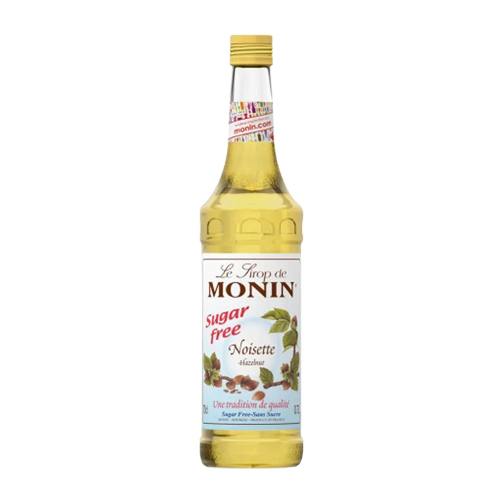 Monin Hazelnut Sugar Free Syrup delivers rich hazelnut flavor with zero sugar, perfect for coffee, tea, and desserts.